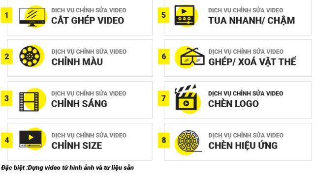 Dịch vụ chỉnh sửa video chuyên nghiệp sẽ cho bạn những video: Cảnh ghép hợp lý, không có cảnh trống, cảnh bể, nội dung thống nhất, câu chuyện mạch lạc Chuyển cảnh mượt, không gây khó chịu cho người xem Nhạc lồng tiếng video độc đáo, hợp cảnh Chất lượng ánh sáng, âm thanh đảm bảo Sau khi được cắt ghép, sản phẩm đảm bảo hoàn hảo cả về chất lượng hình ảnh, âm thanh lẫn n